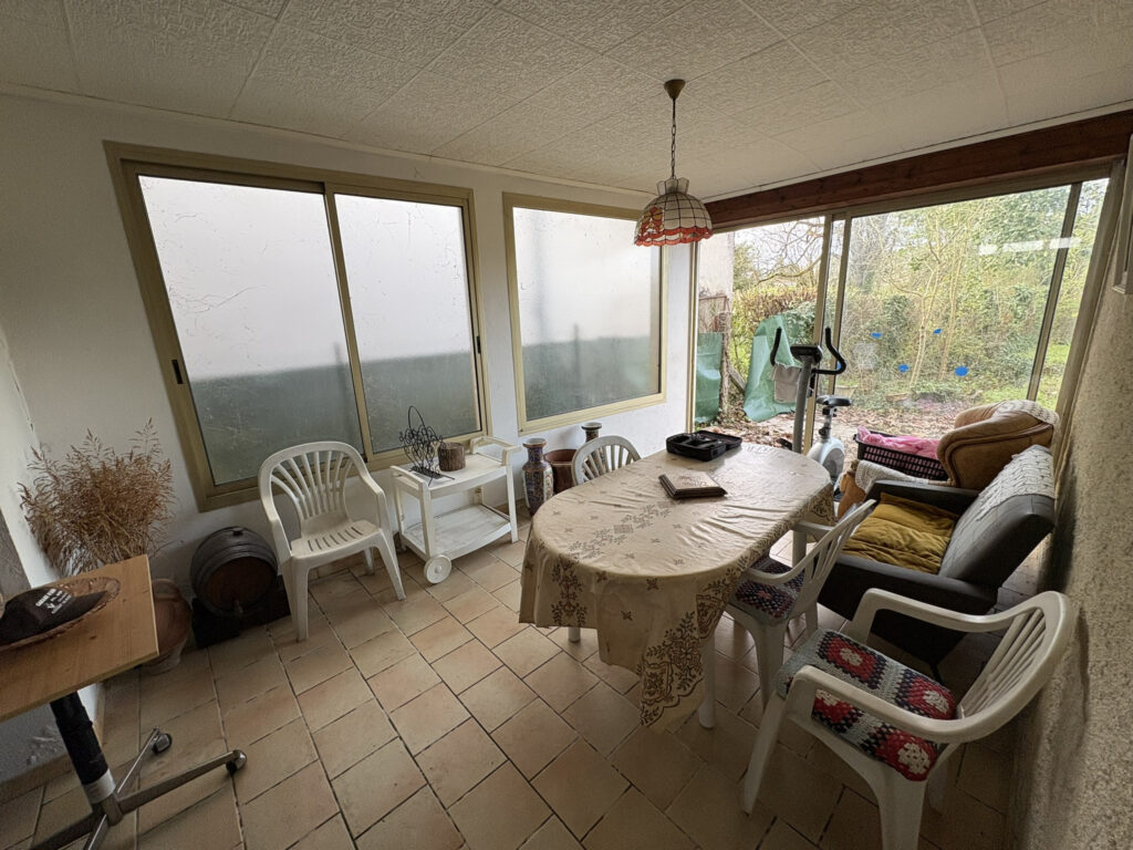 Elle se compose au rez-de-chaussée d’une pièce de vie chaleureuse avec insert, idéale pour des moments conviviaux, d’une cuisine indépendante avec son cellier, ainsi que d’une véranda lumineuse apportant un véritable espace de vie supplémentaire ouvert sur le jardin.