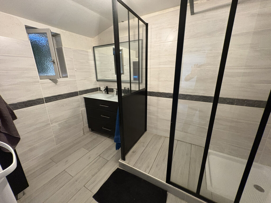 Une chambre au rez-de-chaussée avec sa salle d’eau et WC
